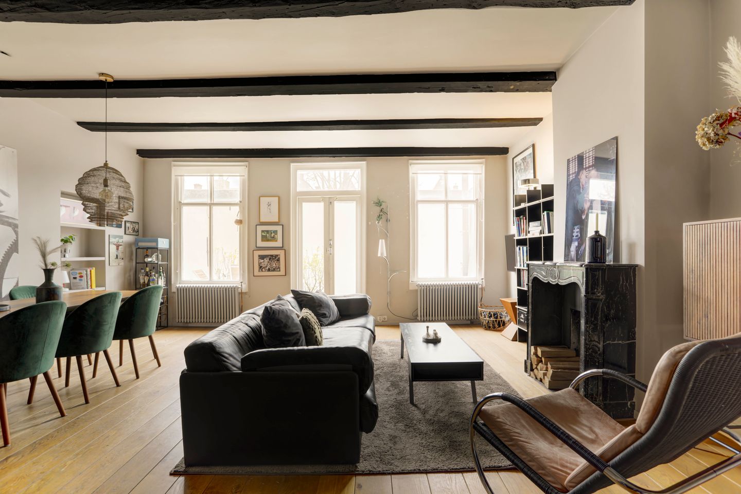Through your front door, you enter a spacious hall with a staircase to the first floor, where the apartment is located. The stairs lead directly to the spacious living room at the rear. This bright living room faces south and has French doors to a flat roof. In summer, this part of the house gets all the afternoon sun.