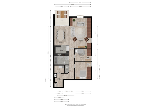 Entree/ gang voorzien van meterkast met automaten en aardlekschakelaar, provisieruimte met opstelling C.V.-gas combiketel en aansluitmogelijkheid voor wasapparatuur, toilet met fonteintje uitgevoerd in lichte kleurstelling, ruime ouderslaapkamer voorzien van bergruimte, tweede slaapkamer, badkamer uitgevoerd in lichte kleurstelling voorzien van ligbad, separate douchecabine, vaste wastafel en 2e toilet, ruime lichte woonkamer met Frans balkon en via een schuifpui toegang tot het royale terras gelegen op het zuidwesten, open keuken voorzien van L-vormige keukenopstelling met diverse inbouwapparatuur te weten; keramische kookplaat, vlakschermafzuigkap, koelkast, combi oven/magnetron, vaatwasmachine en composiet aanrechtblad.