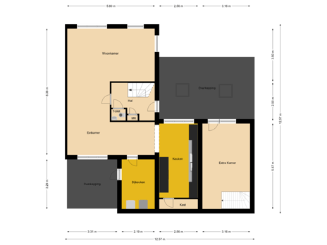 Begane grond: de hal of entree vormt het welkom in uw huis en biedt direct toegang tot de meterkast en gemoderniseerde toiletruimte, voorzien van wandcloset en een fonteintje voor extra gemak. Via de entree betreedt u de riante L-vormige woonkamer, die naadloos overloopt in de uitgebouwde, moderne woonkeuken uit 2025. Deze keuken is voorzien van alle gemakken, zoals een koelkast, vaatwasser, inductiekookplaat, afzuigkap en oven, evenals een vaste kast voor extra opbergruimte. Aansluitend ligt de ruime bijkeuken, met handige witgoedaansluitingen, perfect voor wasmachine en droger. Op de begane grond valt de stijlvolle PVC visgraatvloer direct op, die een warme en tijdloze uitstraling geeft. Vanaf deze verdieping bereikt u ook de flexibele kantoor-/praktijkruimte of eventueel een extra slaapkamer, die zowel via de buitenomgeving als via de bovenverdieping toegankelijk is. De bovenverdieping is bereikbaar via een trap, waardoor een goede verbinding tussen de verdiepingen ontstaat.