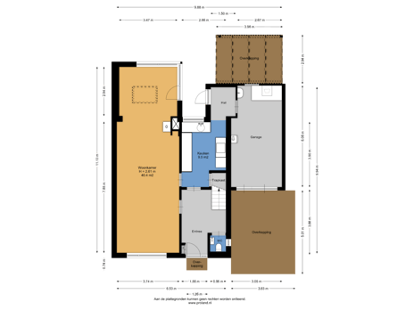 - Begane grond: entree, hal met toilet en trapopgang. Doorzonwoonkamer met uitbouw aan de achterzijde. Dichte keuken. Hal met doorgang naar de garage. Carport en oprit naast de woning. Via de poort naast de oprit, kun je de woning buitenom aan de achterzijde bereiken. Terrasoverkapping achter de woning.
