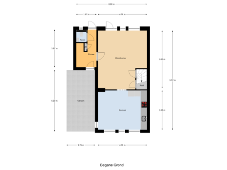 - 96 m² (8,00 meter diep en 12,00 meter breed)