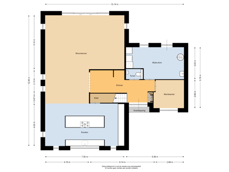 Vanuit de hal zijn ook de bijkeuken en werkkamer bereikbaar. De bijkeuken biedt ruimte voor witgoedaansluitingen en herbergt de warmtepomp. De werkkamer is een lichte, functionele ruimte met voldoende plek voor een bureau en opberging, ideaal voor werk of studie vanuit huis. De gehele begane grond is uitgerust met comfortabele vloerverwarming.