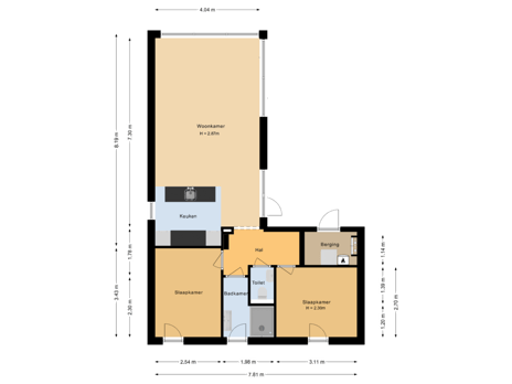 - 3 kamers (2 slaapkamers)