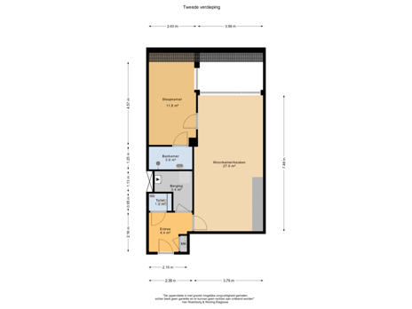 De woonkamer en keuken zijn in totaal circa 27.6 m2, met het zitgedeelte bij de buitendeur en genoeg ruimte voor een gezellige eethoek. Dankzij de ligging aan de achterzijde van het gebouw woon je hier heel rustig.