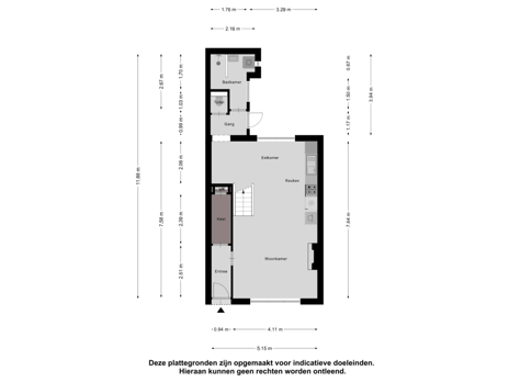 - 13 m² (3,94 meter diep en 3,29 meter breed)