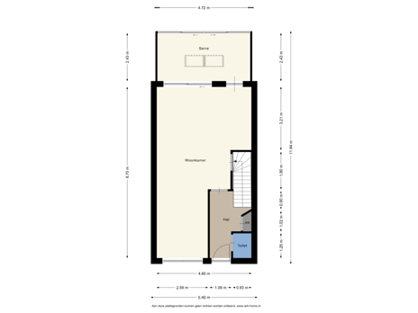 - 44 m² (11,00 meter diep en 4,00 meter breed)