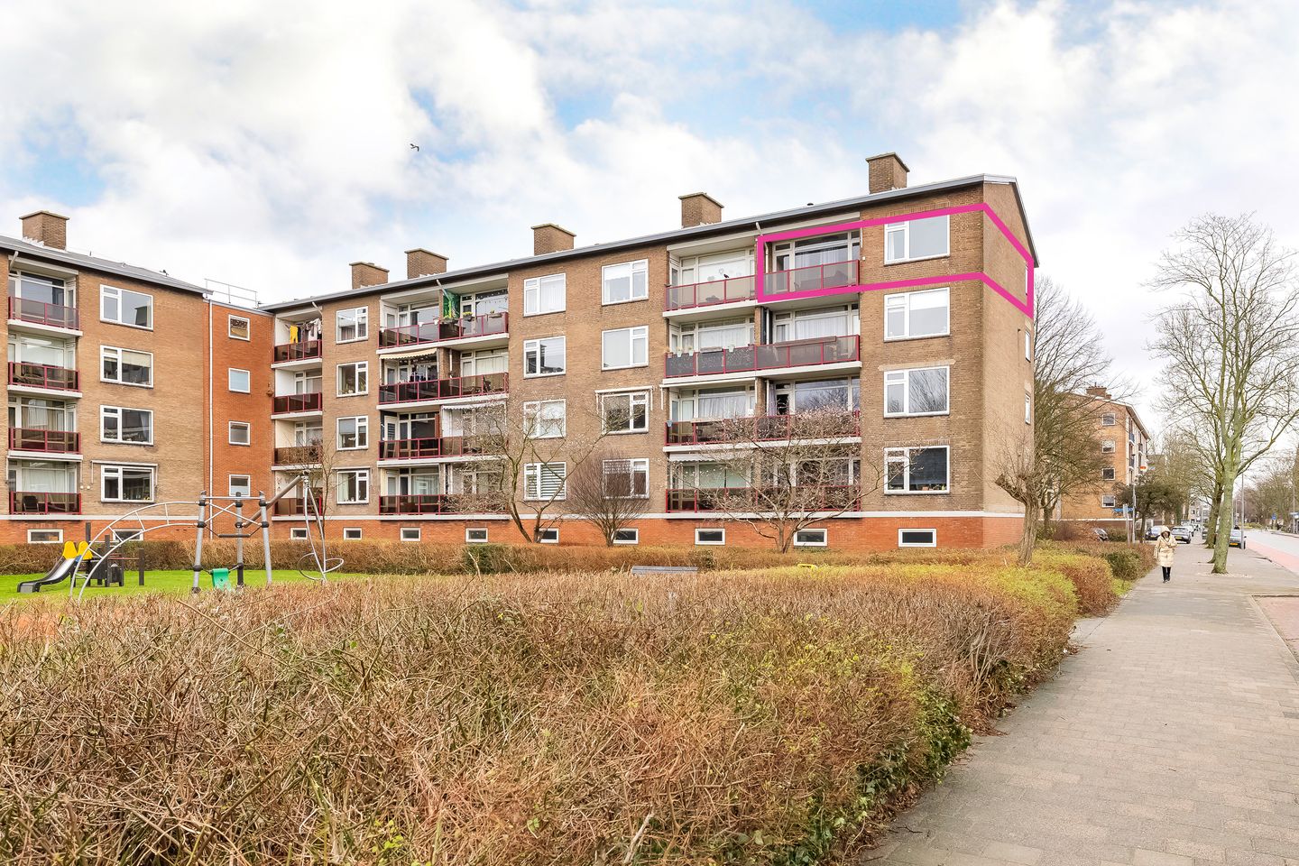 entree met meterkast, ruime hal, slaapkamer (thans in gebruik als kastenkamer), dichte keuken met inbouwapparatuur, lichte woonkamer met deur naar tweede slaapkamer en deur naar het balkon, grote derde slaapkamer met tweede deur naar balkon, badkamer met douche en wastafel, separate toiletruimte. Het balkon heeft de meest gunstige zonligging en biedt een mooi uitzicht.