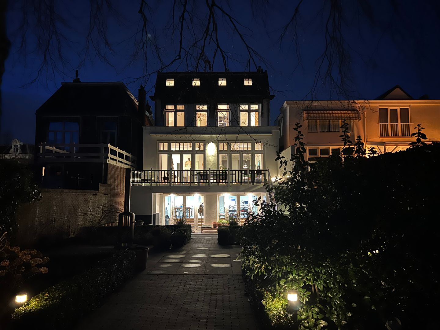 Het aanzicht van de achtergevel is net zo indrukwekkend als dat van de voorgevel, u woont midden in de stad en ervaart de rust en verstilling van een monumentaal en historisch pand in een lommerrijke omgeving. De achtertuin is een oase van rust. Met een ligging op het zuiden geniet u de hele dag van de zon en de vogelgeluiden. Het terrein is diep met een prachtig groen uitzicht en veel privacy. De statige beuk in de tuin versterkt de klassieke uitstraling van de woning zonder de zon weg te nemen van het terras en het huis. Aan de achterzijde van de tuin bevindt zich een houten schuur en berging voor de fietsen, die toegang biedt tot een achtergelegen terrein met de garageboxen.