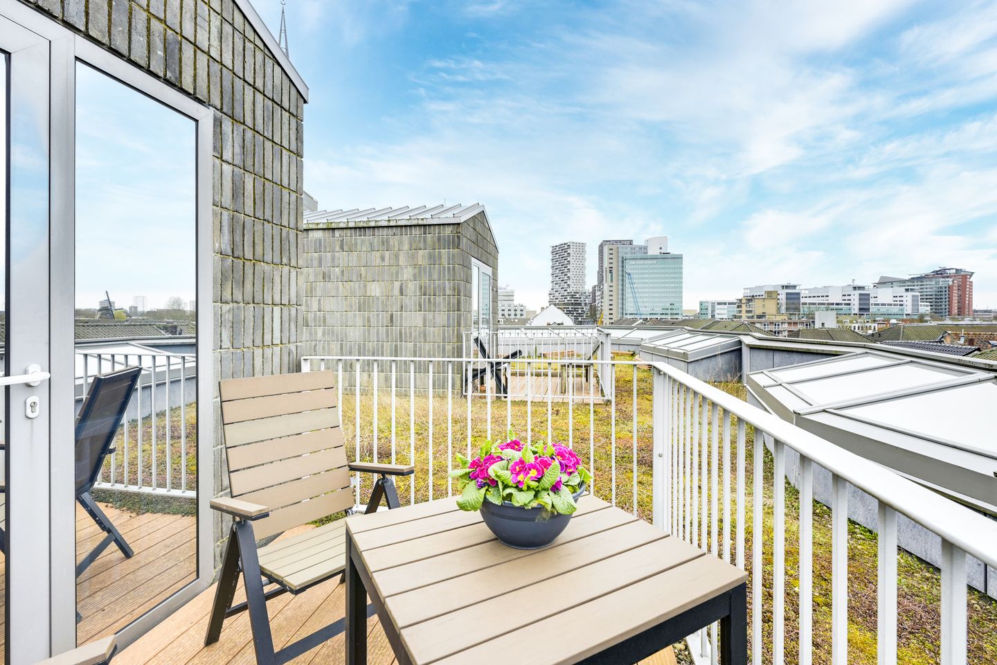 V Een zonnig privé dakterras, plus een gezamenlijk dakterras met uitzicht over de stad
