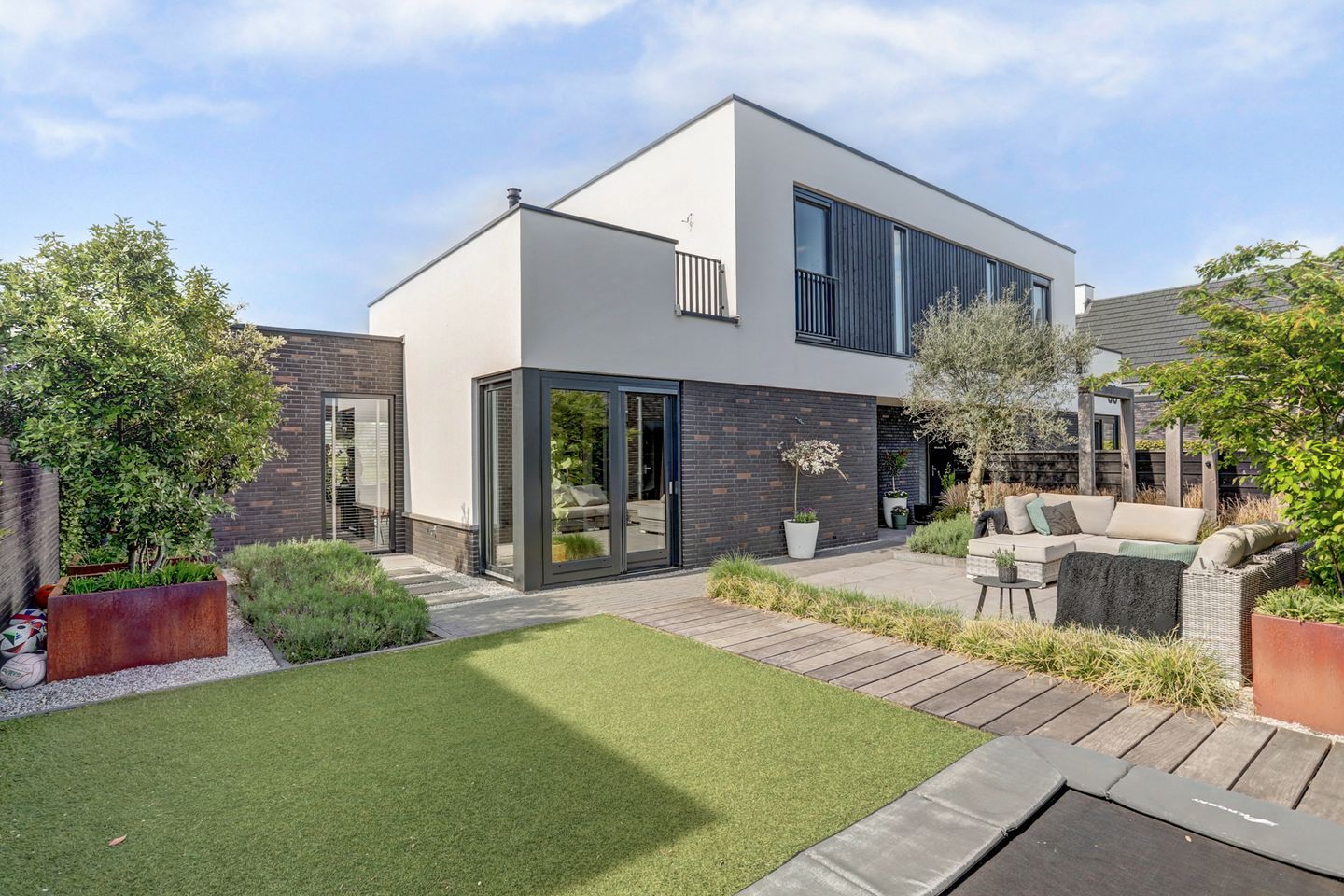 De achtertuin is werkelijk bijzonder: een op het westen gelegen uitgestrekte houten vlonder aan het water vormt het perfecte decor voor lange zomeravonden, gezellige borrels of gewoon een ontspannen moment voor uzelf. De beplanting in stijlvolle potten geeft een mediterrane sfeer, en dankzij de beschutte ligging geniet u hier van volledige privacy en een adembenemend uitzicht. Het is een buitenruimte die aanvoelt als een luxe vakantieverblijf – maar dan gewoon thuis.