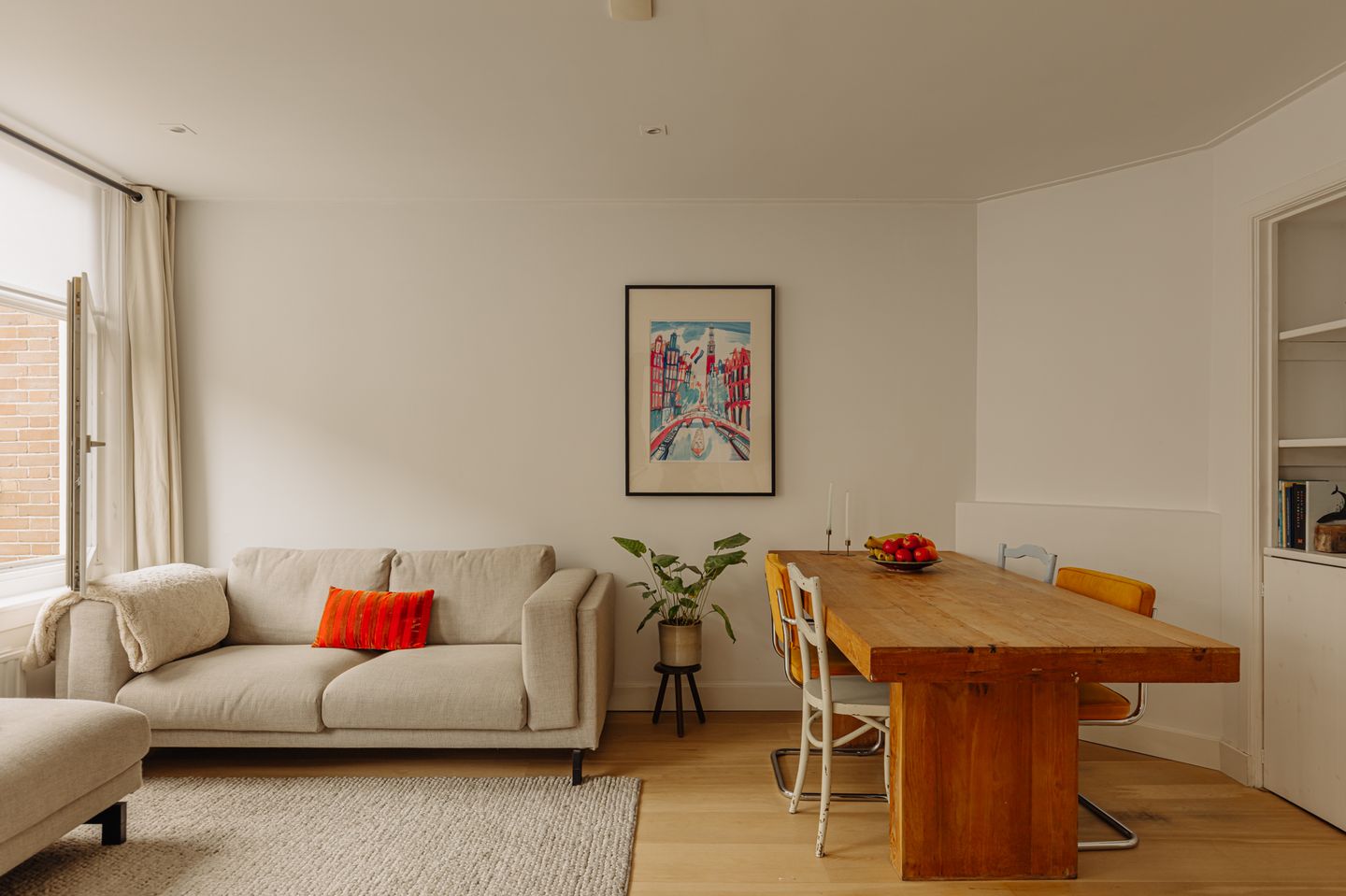 Op de eerste verdieping van een sfeervol jaren ’30-pand bevindt zich dit lichte en instapklare appartement. De ruime woonkamer met open, moderne keuken vormt het hart van de woning, compleet met inbouwapparatuur, spoeleiland en drie brede ramen die zorgen voor een zee van licht.