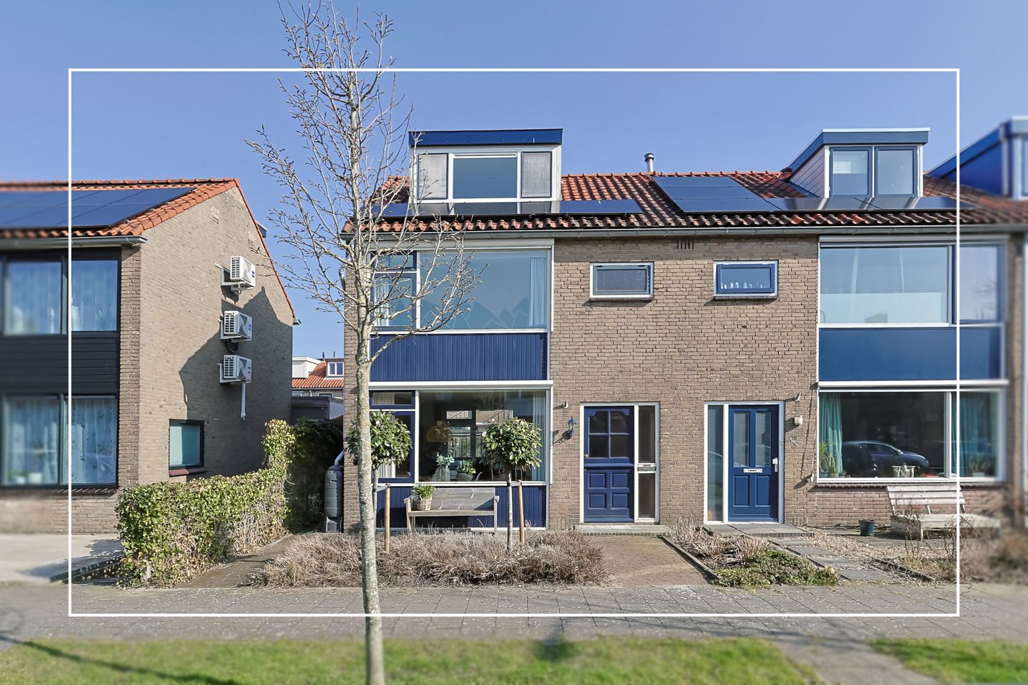 - Entree tot de woning via de ruime voortuin. De voortuin is deels voorzien van beplanting en tegels.