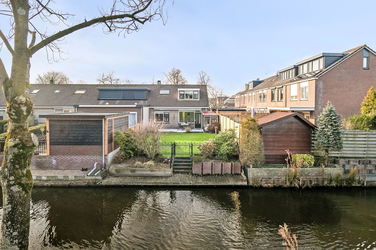 Royale voor- en achtertuin, de achtertuin grenst met een houten vlonder aan het water en is met een trapje te betreden. Vlonder is afgeschermd met een metalen tuinhekje. Voortuin is royaal en biedt mogelijkheden tot meer parkeerruimte. De tuingrens wordt aan beide zijden afgeschermd met een nette schutting. Door de steeg naast de woning wordt de voortuin met de achtertuin verbonden.