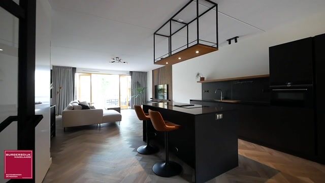 Via de verzorgde voortuin kom je binnen in de hal met meterkast, trapopgang en toilet. De ruime, lichte leefruimte heeft een moderne open indeling. In het midden van de ruimte bevindt zich een stijlvolle keuken met kookeiland, voorzien van hoogwaardige inbouwapparatuur zoals een combi-oven, koel-vriescombinatie, vaatwasser, inductiekookplaat en afzuigkap. Dankzij de centrale ligging van het eiland is er een natuurlijke verdeling ontstaan: aan de voorzijde bevindt zich de eetkamer met uitzicht op de straat, en aan de achterzijde de zitkamer, met openslaande deuren naar de tuin.