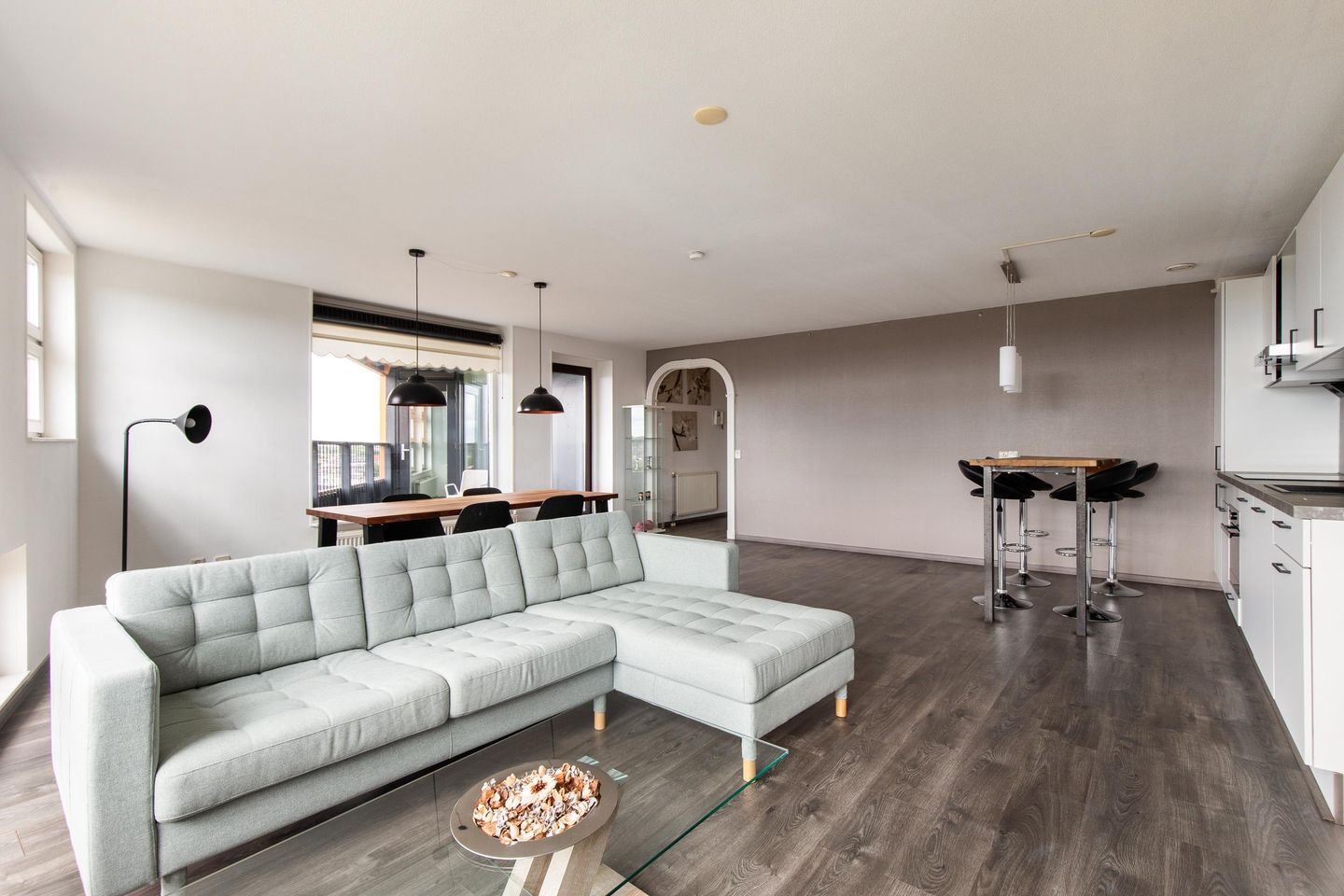 Met een royale woonoppervlakte van circa 92 m² biedt de woning een fijne en praktische indeling. De ruime en lichte woonkamer vormt het hart van het appartement. Dankzij de grote raampartijen valt er veel natuurlijk licht binnen, wat zorgt voor een aangename en open sfeer. De woonkamer biedt volop ruimte voor een comfortabele zithoek en een ruime eethoek, perfect voor gezellige avonden met familie of vrienden. Vanuit de woonkamer heeft u direct toegang tot het balkon, waar u heerlijk kunt ontspannen en genieten van de levendige omgeving.