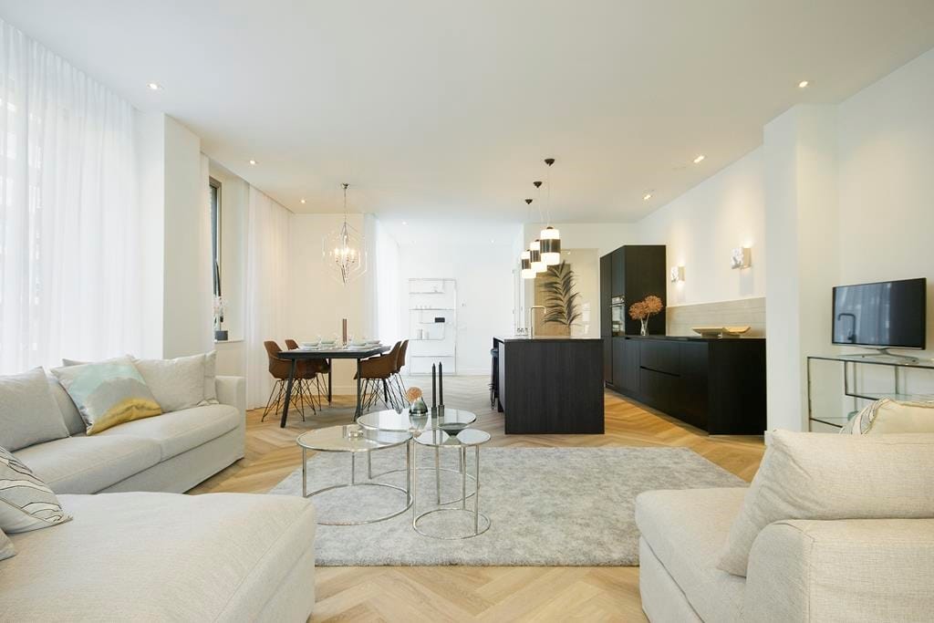 The George offers a wealth of beautiful apartments, designed with luxury, understatement, and sustainability in mind. It stands as the most remarkable building on the Zuidas. An impressive green environment extends from the entrance inward. From the shaded ground floor, a gradual staircase leads to sunny south-facing terraces. These generous terraces, adorned with lush greenery, ensure optimal privacy and are strategically placed to capture sunlight throughout the day.
