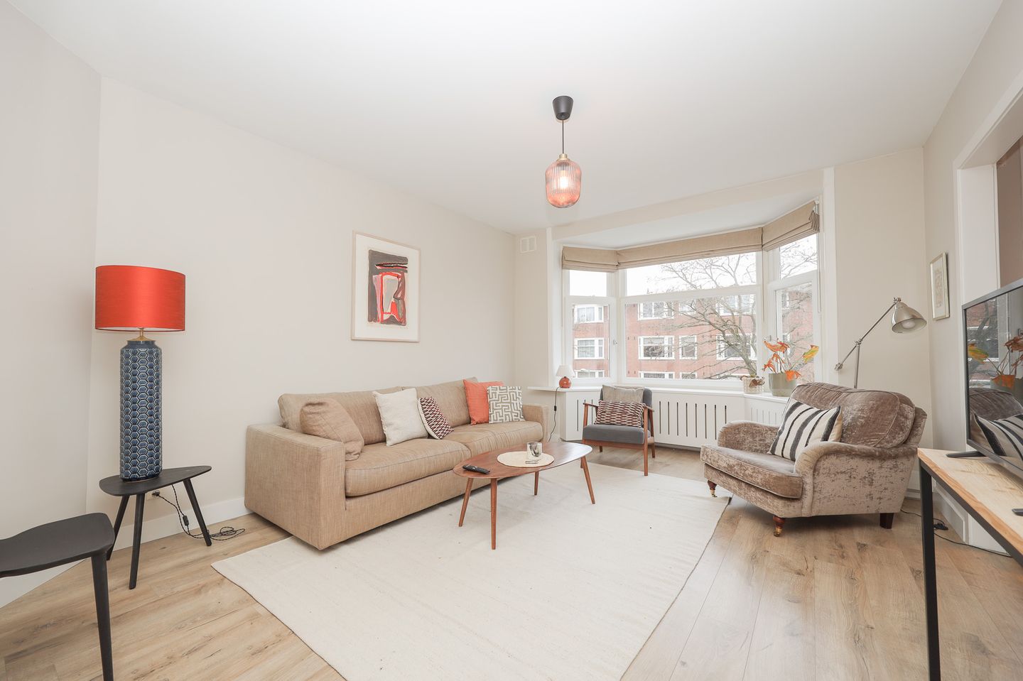 Furnished and bright apartment of approx. 93 m², featuring a spacious balcony and two bedrooms, located in the popular Rivierenbuurt area. Available until July 31st, 2027, with the possibility of extension. Location / Accessibility The property is located on a quiet and green street in the Rivierenbuurt. In the nearby Rijnstraat and the slightly further Maasstraat, you will find a wide variety of shops, restaurants, and supermarkets. The Rivierenbuurt offers plenty of restaurants, cafés, and terraces. For sports and recreation, you have Martin Luther King Park, De Mirandabad indoor and outdoor swimming pool, and the Amstel River within walking distance. Within five minutes by bike, you are in the lively De Pijp district, while in the opposite direction you can easily reach the Zuidas business district. The apartment is easily accessible by both public transport and car. The Ring A10 and the exit to the A2 motorway are nearby. It is only a 10-minute bike ride to the city centre. Amsterdam RAI Station and Amsterdam Amstel Station are within a five-minute cycling distance, and trams 4 and 12, as well as the North/South metro line, are within walking distance. Lay-out Second floor: Spacious entrance hall providing access to all rooms. At the front of the property, you will find the generously sized living room featuring a pleasant view. Through the office room, an internal staircase leads to the third floor and the main bedroom. At the rear, the dining room with open-plan kitchen is equipped with various built-in appliances, including an induction hob, dishwasher, combination oven, and fridge/freezer. The kitchen also features a separate laundry/storage cupboard with a washing machine and dryer. French doors provide access to the balcony located at the rear of the property. Adjacent to the dining area is the first bedroom/office with built-in wardrobes. Third floor: On the third floor, you will find the bright main bedroom with an en-suite bathroom and walk-in closet. The bathroom is equipped with a bathtub, shower, washbasin, and toilet. Features: - Fully furnished - Balcony - Two bedrooms - Great location - Temporary rental from April 1st until July 31st, 2027, with the possibility of extension - Not suitable for students/sharing - Not suitable for pets This information has been compiled by us with the necessary care. No liability is accepted for any incompleteness, incorrectness or otherwise, or consequences thereof. All sizes and dimensions are indicative. Published measurements are not NEN measured.