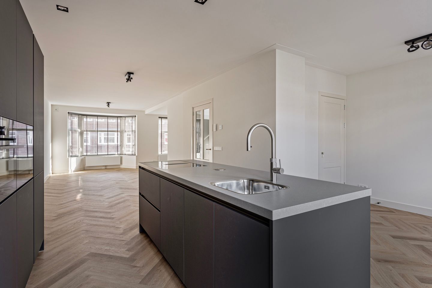 Het appartement is geheel gerenoveerd in 2023/2024 en heeft een oppervlakte van circa 105 vierkante meter. Het appartement is gelegen op de derde en vierde verdieping van het pand. Op de benedenverdieping bevindt zich de lichte, riante doorzonwoonkamer met aan de achterzijde de luxe open keuken. De keuken is voorzien van een kookeiland met inductiekookplaat, koel,-vriescombinatie, vaatwasser, wijnklimaatkast en Quooker, Vanuit de keuken is het balkon (Z) te bereiken. Op de bovenste verdieping zijn de twee slaapkamers (11m2 & 7,4m2) en de badkamer. De mooi afgewerkte badkamer heeft een inloopregendouche, een ligbad en een dubbele wastafel met meubel. Ook heb je via deze verdieping toegang tot het zonnige dakterras, die gelegen is op het zuiden. Het gehele appartement wordt opgeleverd met een mooie PVC vloer. De ramen in de woonkamer worden voorzien van donkere houten luxaflex en de slaapkamers worden voorzien van donker grijze gordijnen en vitrage.