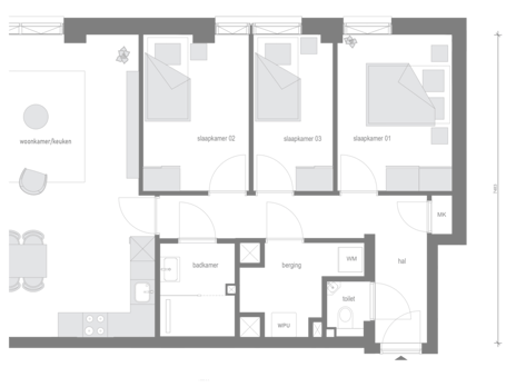 • Er is geen aparte externe berging aanwezig