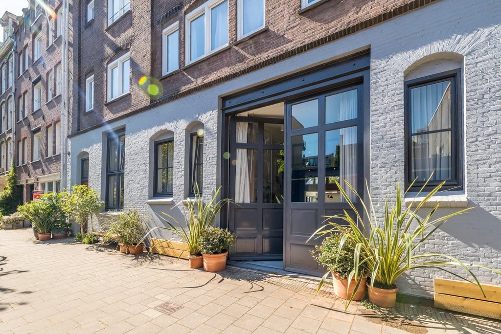 One of a kind! Fantastic and stylishly designed LOFT of 194 m² with ceiling heights of up to 3.80 metres, realised in collaboration with Studio Modijefsky and located in a historic building that was formerly used as a fabric factory and art studio. It features an attractive patio garden of approx. 25 m² and large windows provide plenty of natural light. This extremely unique property has a spacious and playful layout, with different ceiling heights giving each room its own character. It is currently furnished as a lovely family home with 3 bedrooms, 2 bathrooms, a spacious office and plenty of living space.
