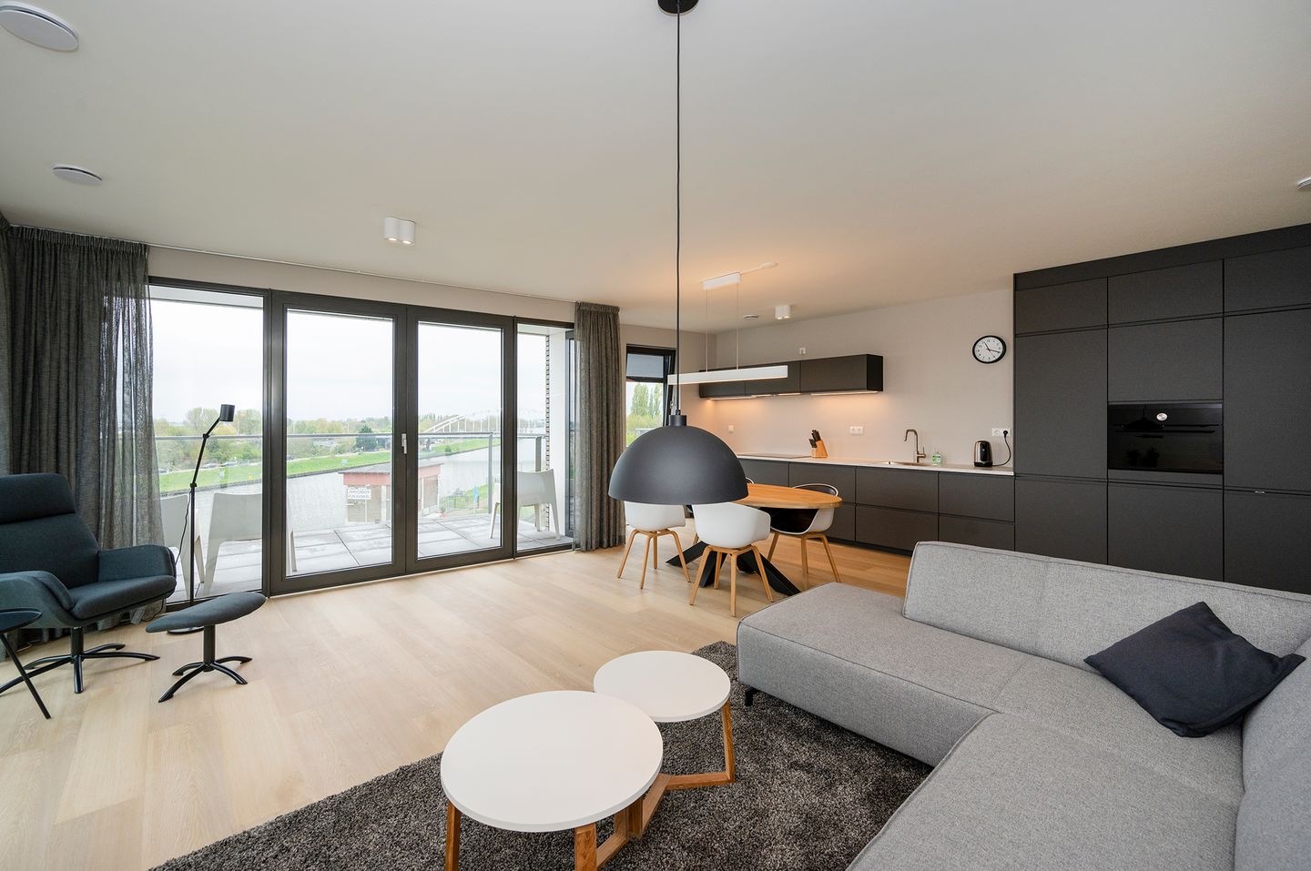 Entree woning, lange gang met toegang tot alle vertrekken, 2 slaapkamers, was/bergruimte, separaat toilet. Lichte woonkamer met grote raampartijen, zithoek die is voorzien van een 55" Samsung flatscreen TV (niet op foto), toegang tot een riant balkon via de kantelkiepdeuren voorzien van 4 relaxte stoelen en salontafel en een open keuken. De keuken is greeploos en voorzien van een inductiekookplaat, ingebouwde afzuiginstallatie, vaatwasser, combi-oven en een aparte koel/vriescombinatie. Badkamer is voorzien van een dubbele wastafel met meubel, ligbad, inloopdouche en tweede toilet.