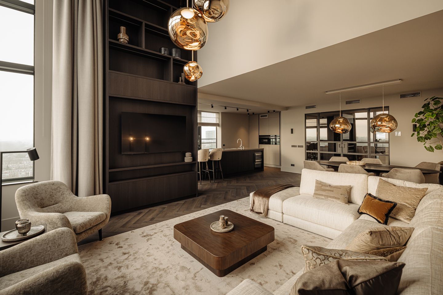 Dit volledig gerenoveerde penthouse van ca. 183 m² ligt op de 20e en 21e verdieping van Résidence L’Étoile en biedt uitzonderlijk wooncomfort in Amsterdam Zuid.