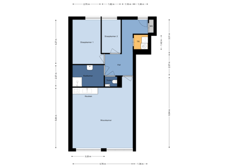 Vanuit de hal van de woning zijn alle vertrekken in de woning gemakkelijk bereikbaar. Het appartement heeft 2 slaapkamers aan de galerijzijde. De hoofdslaapkamer is groot genoeg voor een 2-persoonsbed én een kledingkast. De 2e slaapkamer is een fijne kamer om bijvoorbeeld te gebruiken als kantoor.