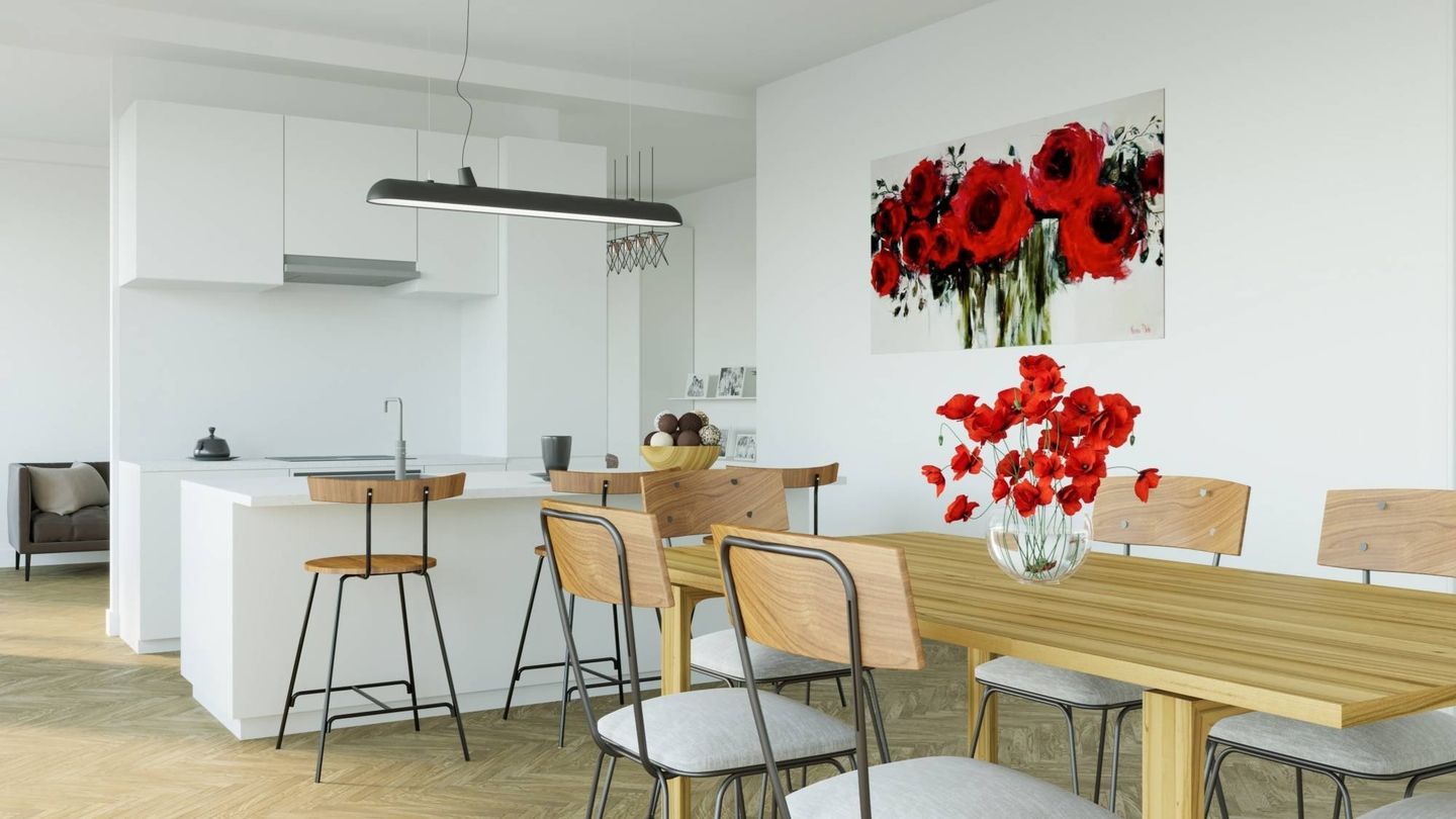 Entrance into the modern central spacious hall with letterbox panel, audiophone installation, lifts and the stairwell. There is also a reception and a BringMe Box installed so that parcel deliverers can leave your package there when you are not at home. Access to the building is possible with an access pass and / or with your smartphone.