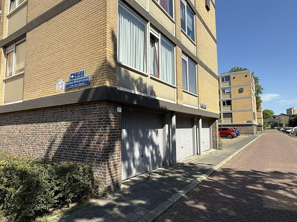 Garage in 's-Hertogenbosch-Zuid, nabij centrum, op de hoek van de Philippus de Montestraat en de Adriaen Willaerstraat, nabij het Zuiderpark.