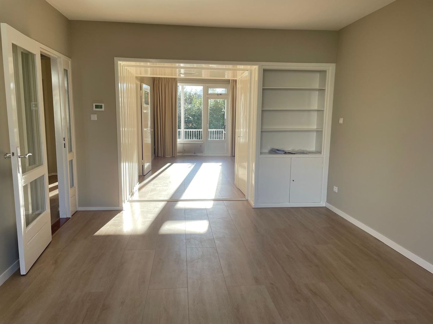 De royale en lichte woon-/eetkamer wordt gekenmerkt door de originele schuifseparatie met ingebouwde bergkasten, waardoor de ruimte flexibel in te delen is. De achterkamer biedt directe toegang tot een zonnig achterbalkon, ideaal om buiten te genieten. Aan de voorzijde bevindt zich een extra kamer, geschikt als slaapkamer of studeerkamer, met toegang tot het balkon aan de voorzijde en een directe verbinding met de woonkamer.
