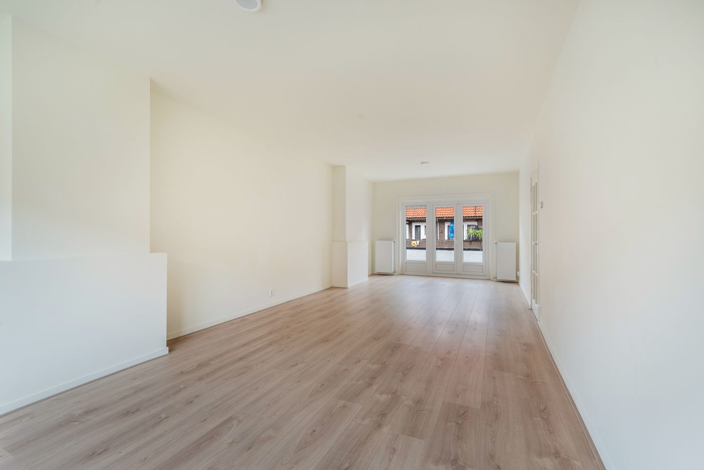 De lichte en ruime woonkamer is volop gevuld met natuurlijk licht dankzij de grote ramen aan beide zijden. Vanuit de woonkamer stapt u zo het balkon op, waar u heerlijk buiten kunt genieten van de frisse lucht.