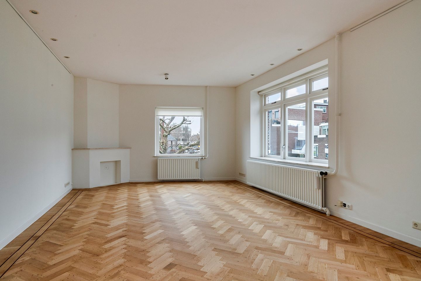 General entrance on the ground floor. Stairs to the first floor lead to the entrance to the apartment. The beautiful herringbone parquet is the first thing that catches your eye, which is placed throughout the apartment. The hallway gives access to all rooms. The spacious living and dining area has built-in cupboards with original details. The kitchen is fully equipped with a dishwasher, gas stove, oven, fridge, freezer, and Quooker. The connection for the washing machine can be found here as well.