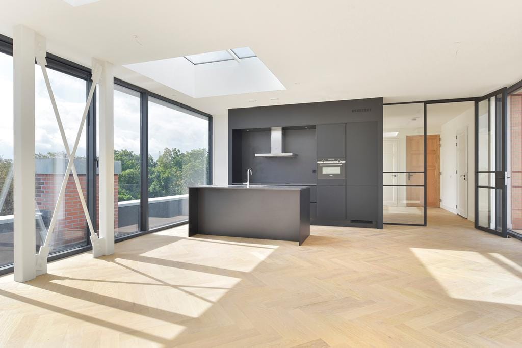 The apartments are finished with great attention for detail. For example, the rustic French oak floors are laid in a herringbone pattern and feature underfloor heating.