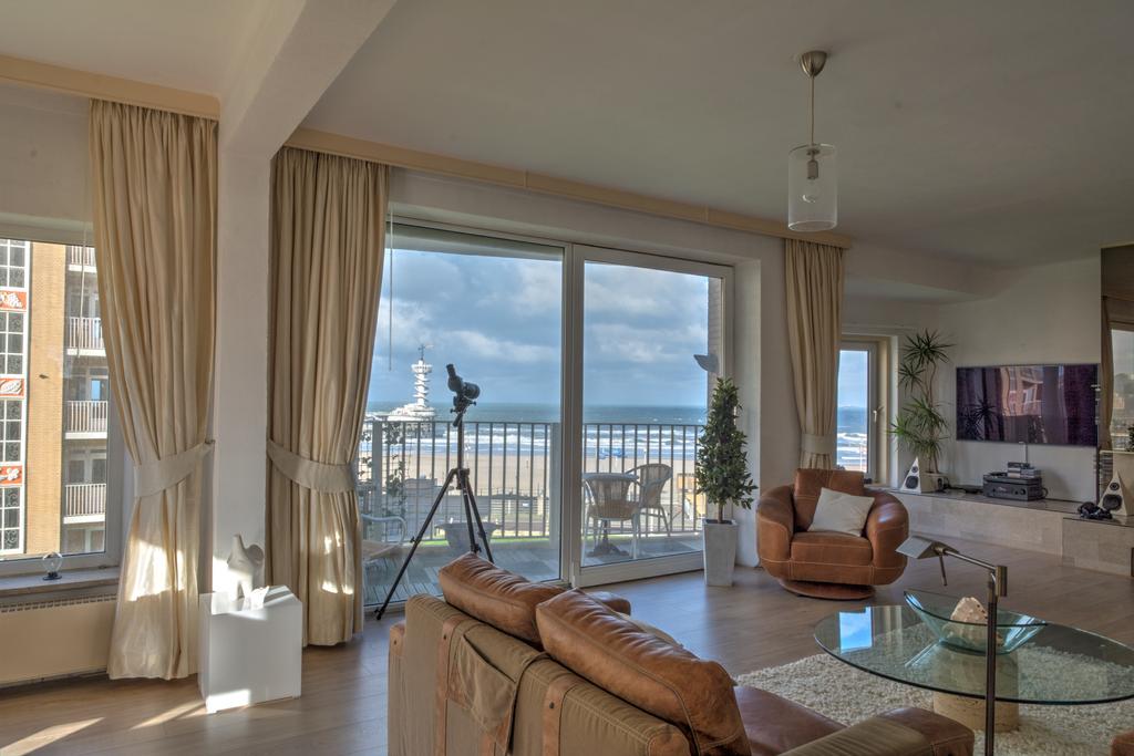 Closed entrance, elevator or stairs to the 2nd floor, entrance to the apartment, hall, toilet, bathroom with shower, washbasin, design radiator and washer and dryer, spacious living/dining (11 x 4.35m) room with sliding door to the sunny balcony with sea view, bedroom/study (3.60 x 3.50m) with large wardrobe, masterbedroom with wardrobe and double bed (4.55 x 4.00m), kitchen with all the appliances, 2nd balcony with morning sun and a view over The Hague.