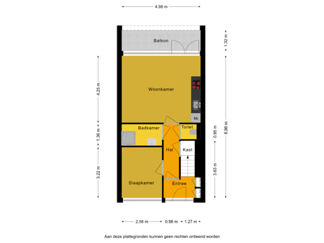 Vanuit uw eigen voordeur treedt u de hal binnen welke toegang geeft tot de woonkamer, de slaapkamer, badkamer en aparte ruimte voorzien van de wasmachine. Vanuit de hal hebt u ook toegang tot de deels betegelde toiletruimte met zwevend closet. Het gehele appartement is voorzien van lichte laminaatvloer.