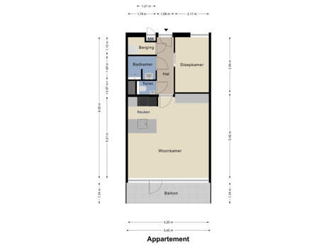 Vanuit uw voordeur treedt u de hal binnen welke toegang geeft tot de woonkamer, de slaapkamer, badkamer en aparte ruimte voorzien van de wasmachine. Vanuit de hal hebt u ook toegang tot de deels betegelde toiletruimte met zwevend closet. Het appartement is voorzien van laminaat vloer en een de hal van tegels.