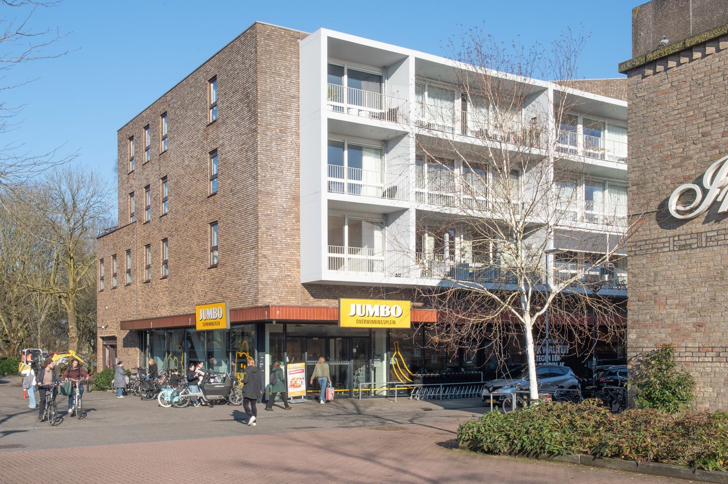Op een mooie locatie boven de supermarkt, met vrij uitzicht over winkelcentrum Overwinningsplein, ligt dit lichte hoekappartement op de eerste verdieping. Het appartement beschikt over drie ruime slaapkamers en een royale woonkamer met half-open keuken, en heeft daarnaast een zonnig balkon op het westen waar je heerlijk van de middag- en avondzon kunt genieten.
