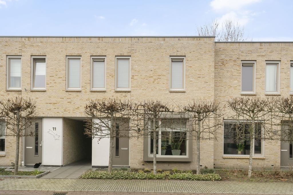 Energiezuinige tussenwoning aan woonhof met woonkamer, woonkeuken, drie slaapkamers, ruime badkamer en fijne tuin met berging en achterom op het westen.