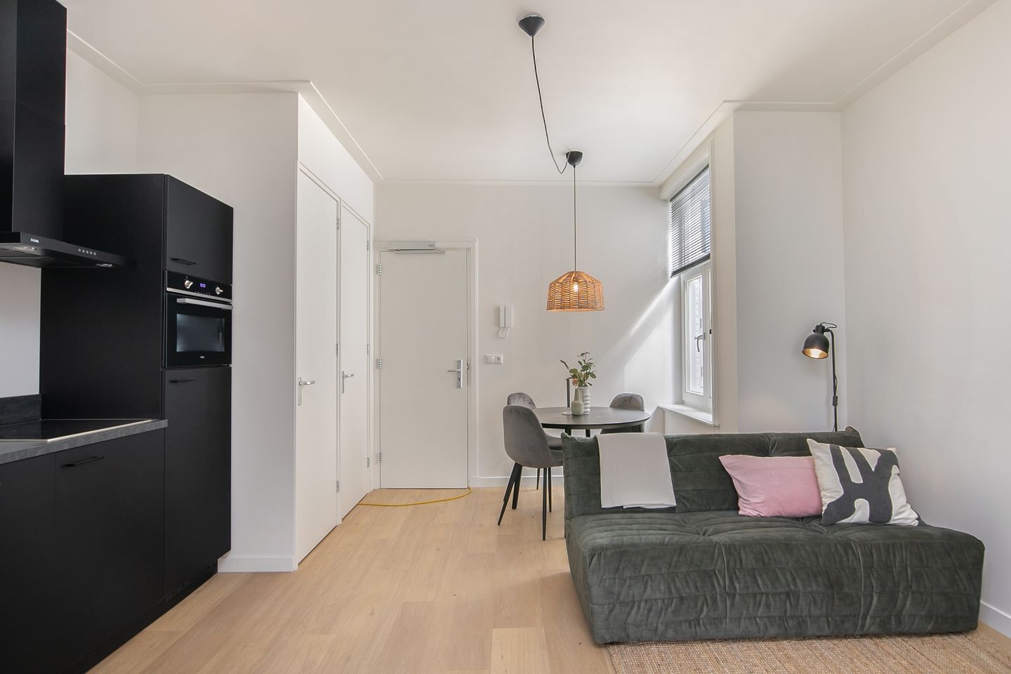 Experience a true city living with this carefully designed studio apartment. Located at the quit backside of the building. The residence has a high ceiling and large windows, allowing plenty of natural light to enter. Luxury bathroom and well-equipped kitchen. The spacious apartment is fully furnished.