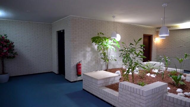Centrale hal met binnentuin, bellentableau en toegang tot de lift.