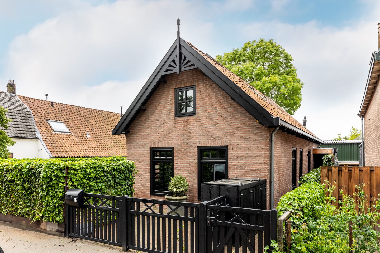 The front garden is located on Kerkplein, attractively landscaped with various types of perennial plants and a lockable gate. On the other side is a path providing access to the front door.