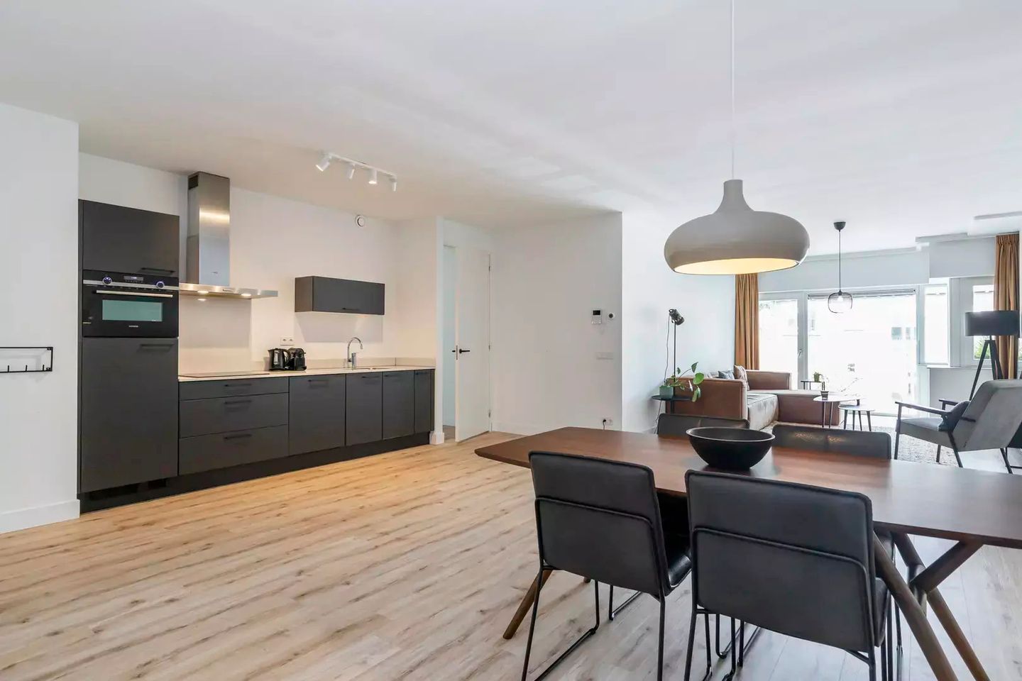 De afgesloten centrale entree is voorzien van brievenbussen, een bellentableau, twee liften en een trappenhuis. Op de tweede verdieping biedt de portiek toegang tot de woning. Aan de voorzijde bevindt zich een ruime inpandige berging met de opstelplaats van de C.V.-combiketel (Intergas, 2020), de mechanische ventilatie-unit en de wasmachineaansluitingen.De royale eet-/woonkamer is ruim opgezet en ontvangt veel daglicht. De luxe open keuken is voorzien van Bosch inbouwapparatuur, waaronder een combi-oven, vaatwasser, 4-pits inductiekookplaat, RVS recirculatiekap en een koelkast met vriesvakje. In de keuken bevindt zich tevens de meterkast.