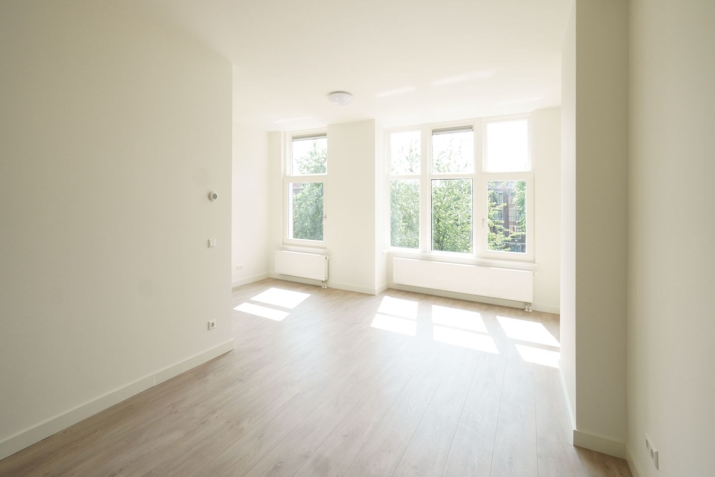 De hoofdslaapkamer aan de achterzijde heeft een eigen balkon en biedt ruimte voor een king-size bed, kledingkast en bureau. De tweede slaapkamer aan de voorzijde is eveneens ruim en perfect als gastenverblijf of kinderkamer. De derde slaapkamer is iets kleiner, maar ideaal als werk- of hobbyruimte.