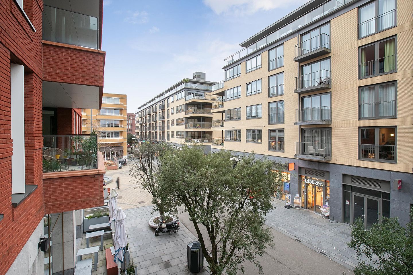 From the living room, you have access to the balcony overlooking the shopping street. The balcony measures 7m².