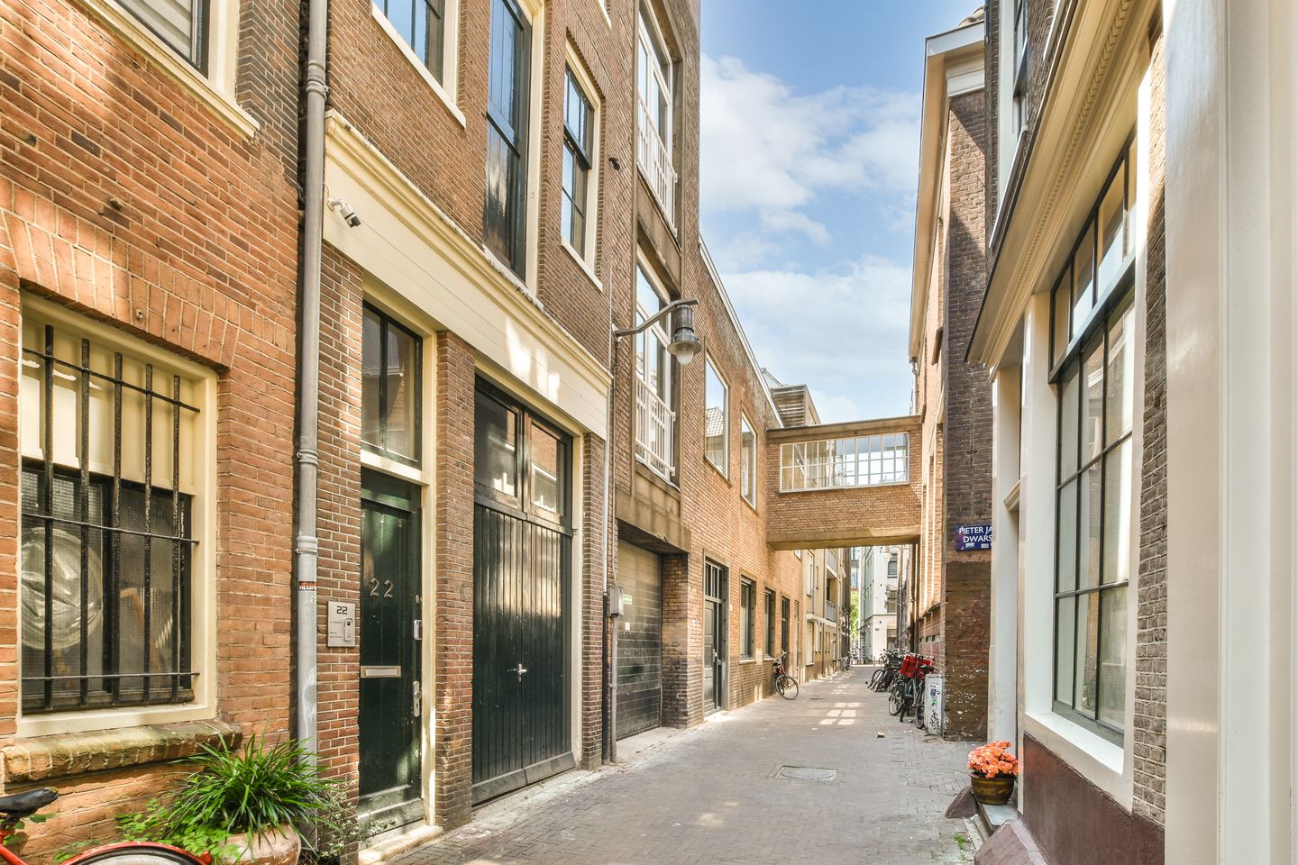 De woning het appartementencomplex is gelegen in een rustige steeg midden in het gezellige en bruisende hart van Amsterdam. De grachten, de Dam en het centraal station zijn op steenworpafstand. Ook supermarkten, winkelgelegenheden, koffietentjes, sportscholen en gezellige restaurants & terrassen, zoals bijvoorbeeld eetcafé De Brakke Grond en The Lobby, zijn op loopafstand.
