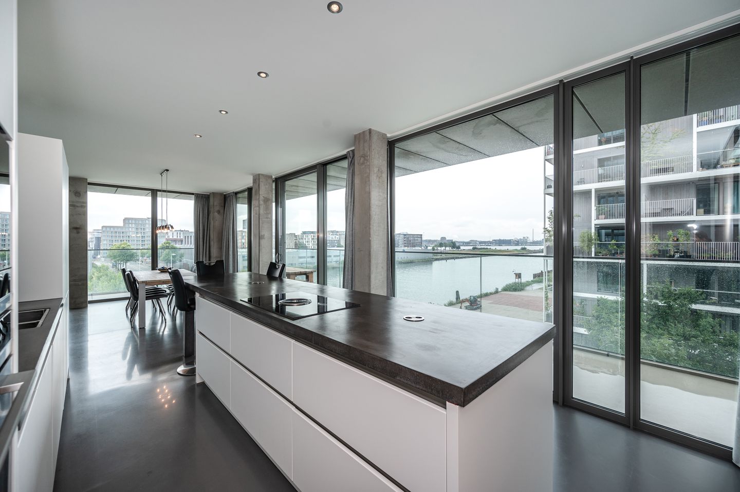 De gehele woning is voorzien van een strakke gietvloer met vloerverwarming, wat niet alleen zorgt voor comfort, maar ook voor een luxe en moderne uitstraling.