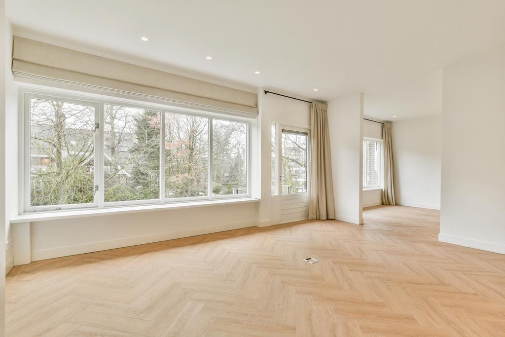 Mooie vissengraat vloer door gehele woning.