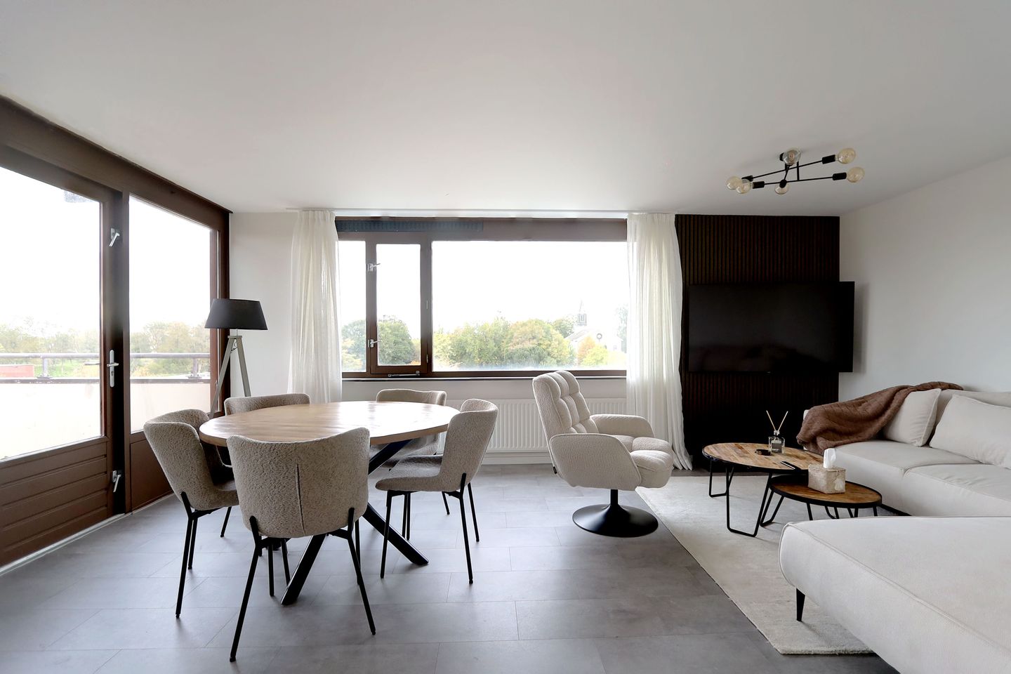 De lichte en royale woonkamer van circa 28 m² vormt het hart van het appartement en beschikt over een open keuken en een praktische inpandige berging met opstelling voor de cv-installatie. De keuken is uitgevoerd in een nette basisopstelling. Vanuit de woonkamer is er toegang tot het zonnige balkon op het westen, waar u tot in de late uurtjes van de zon kunt genieten.