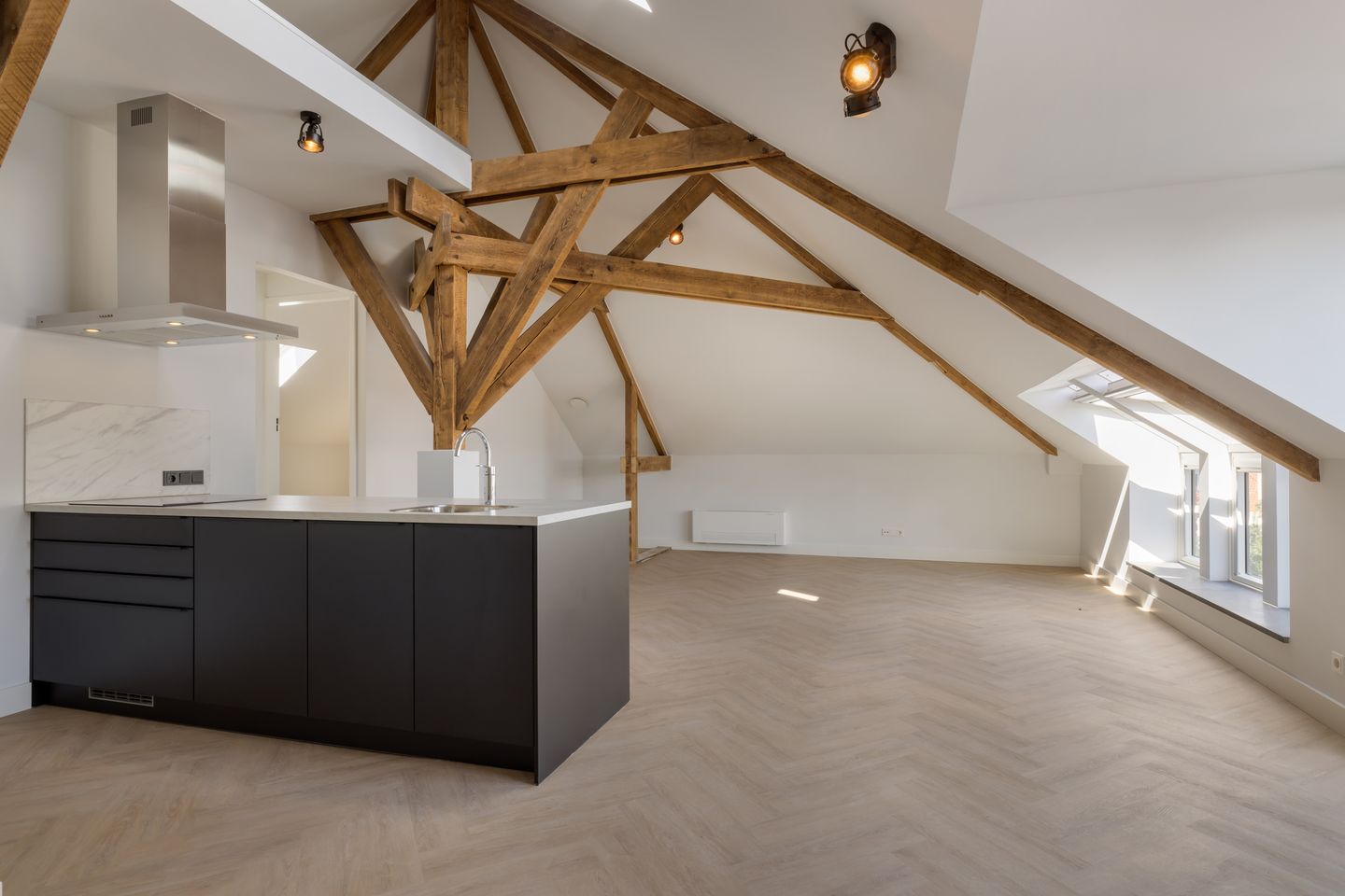Dit penthouse beschikt over twee ruime en lichte slaapkamers. Of je nu een comfortabele hoofdslaapkamer, een logeerkamer of een rustige werkplek wilt creëren, deze kamers zijn volledig aan te passen aan jouw wensen.