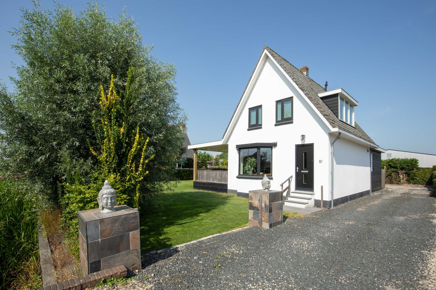 Vrijstaand wonen in een stijlvol gerenoveerde jaren '30 woning op een perceel van 1.003 m² aan de Aalsmeerderweg 91 in Aalsmeer? Dat kan in deze in 2019 gemoderniseerde en uitgebouwde woning. Dankzij de wit gestuukte gevel en de donkere kozijnen heeft de woning een moderne uitstraling gekregen. De achterzijde van de woning is voorzien van een royale uitbouw met grote raampartijen die een fraai zicht bieden op de tuin. Aan de buitenzijde is de woning verfraaid met een sfeervolle veranda en buitenkeuken. Via de oprit rij je het perceel op en kan de auto naast of achter de woning geparkeerd worden.
